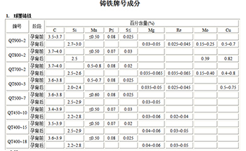 球墨鑄鐵各種牌號材質成分對比-河鑄重工
