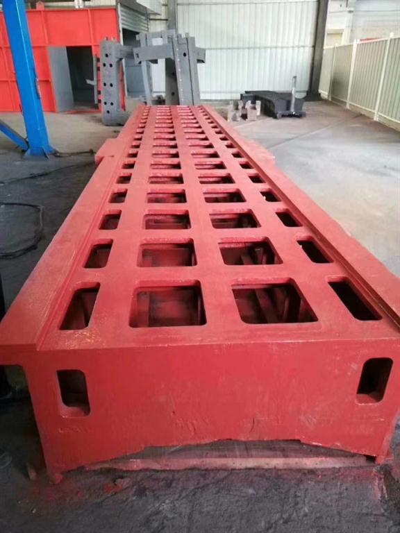 機床鑄件 的材質為細膩灰口鑄鐵,熔煉時配比45%的鋼,以提高機床鑄件的剛性;也有客戶要求做球墨鑄鐵的,球墨鑄鐵的剛性比灰鑄鐵要好,但減震效果相比灰鑄鐵是有很大差距的,而且鑄造成本比灰鑄鐵要高很多;所以球墨鑄鐵不適合做機床的主要構件,比較適合做機床工作臺鑄件使用。
